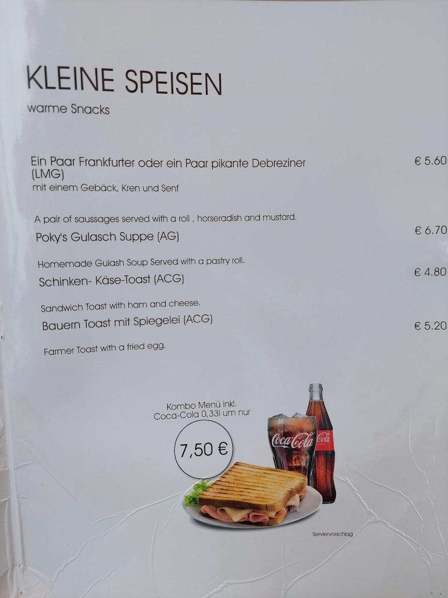 Welcome to Poky's Café, a hidden gem located at Linzer Str. 428 in Vienna. This charming café is celebrated for its friendly service and inviting atmosphere. Customers rave about the quick, personable attention from the owner, creating a sense of belonging that sets Poky's apart. The menu boasts delightful offerings like the popular Schinkenkäsetoast and a selection of rich coffees, making it perfect for a morning pick-me-up or a casual afternoon break.